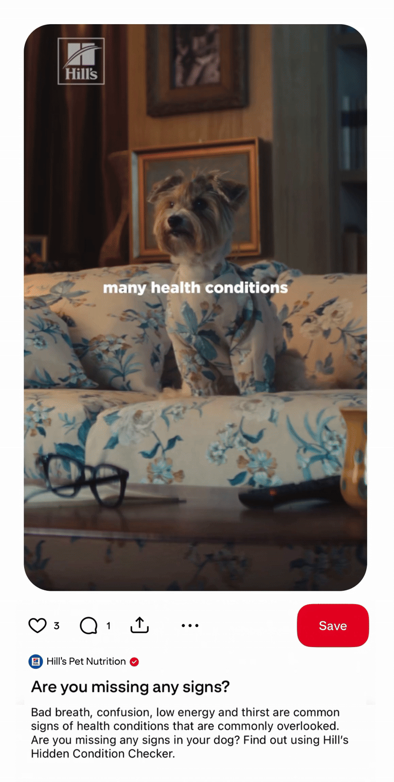 We learned that pet parents often assume health issues will be obvious. But it’s actually the subtle signs (like itching, bad breath, decreased energy and otherwise “normal” behaviors) that can indicate an underlying condition. Through head-turning visuals, we helped educate pet parents and professionals alike that oftentimes the most concerning signs are the ones that blend into everyday life. And with Hill’s Prescription Diet, we can help pets feel better — and help them feel seen.