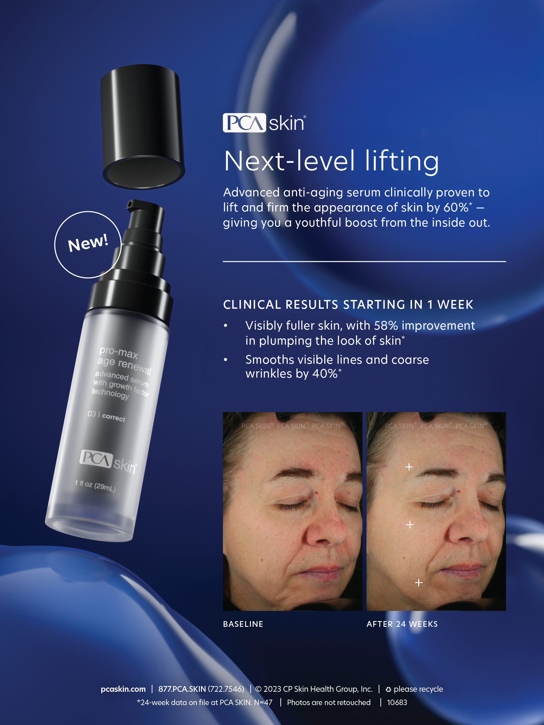 Aging is the #1 skin concern in the country. And when skin starts to sag, self-esteem sinks with it. Pro-Max Age Renewal, a breakthrough serum from PCA Skin, results in 60% lifted, firmer skin. We created a full set of collateral for patients and professionals, including a CGI-driven video, to show how this product gives your skin (and confidence) the ultimate boost.